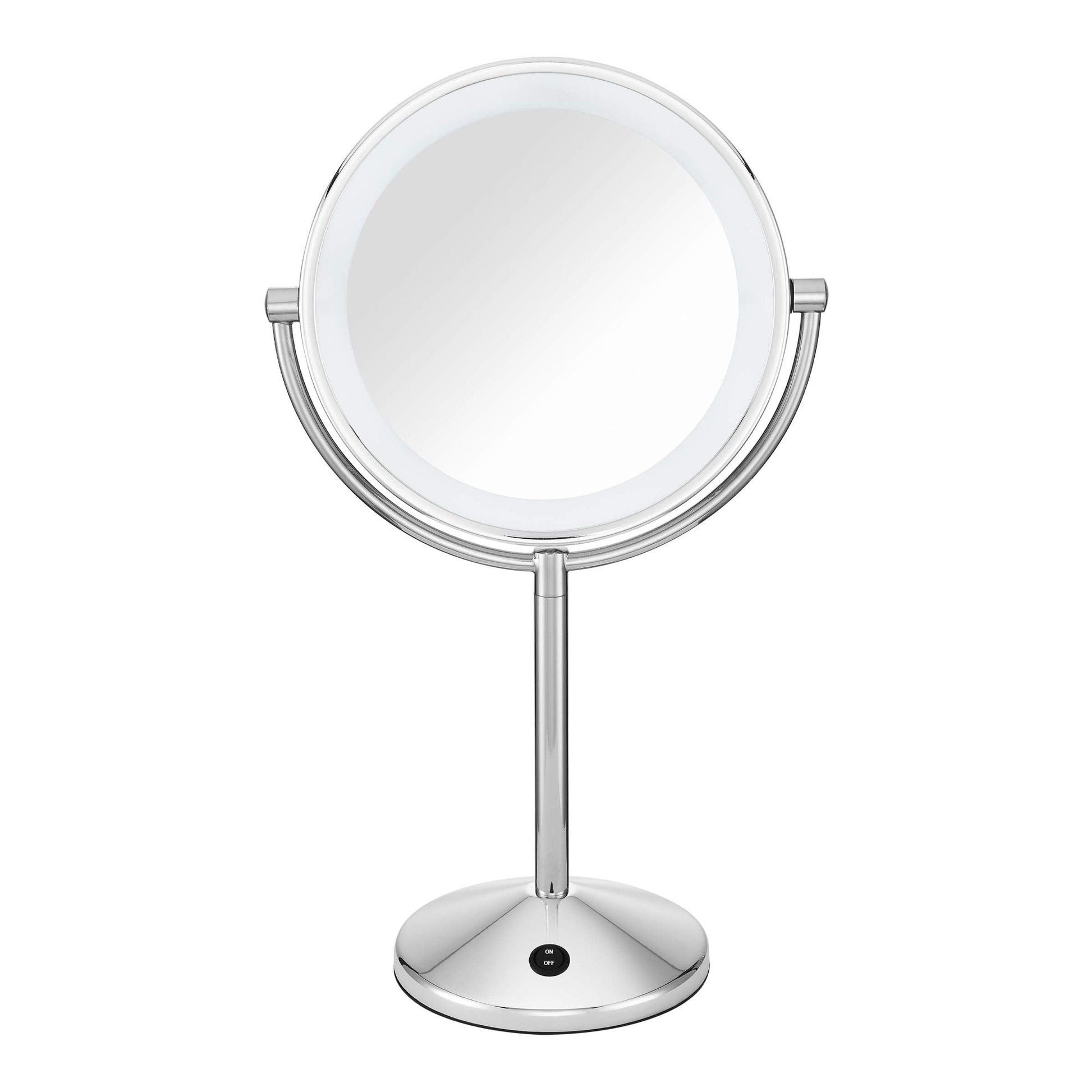Conair Lighted Makeup Mirror with Magnification, LED Vanity Mirror, 1X/10X Magnifying Mirror, Double Sided Mirror, Battery Operated in Polished Chrome