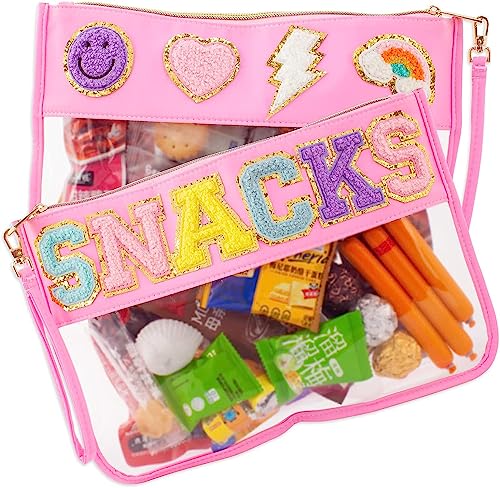 dark swan 1PCS Chenille Patch Nylon Pouch,Clear Waterproof Snacks Bag,With Preppy &Letter Double Sided Patches Multi-purpose Makeup Travel Bag for Women Girls