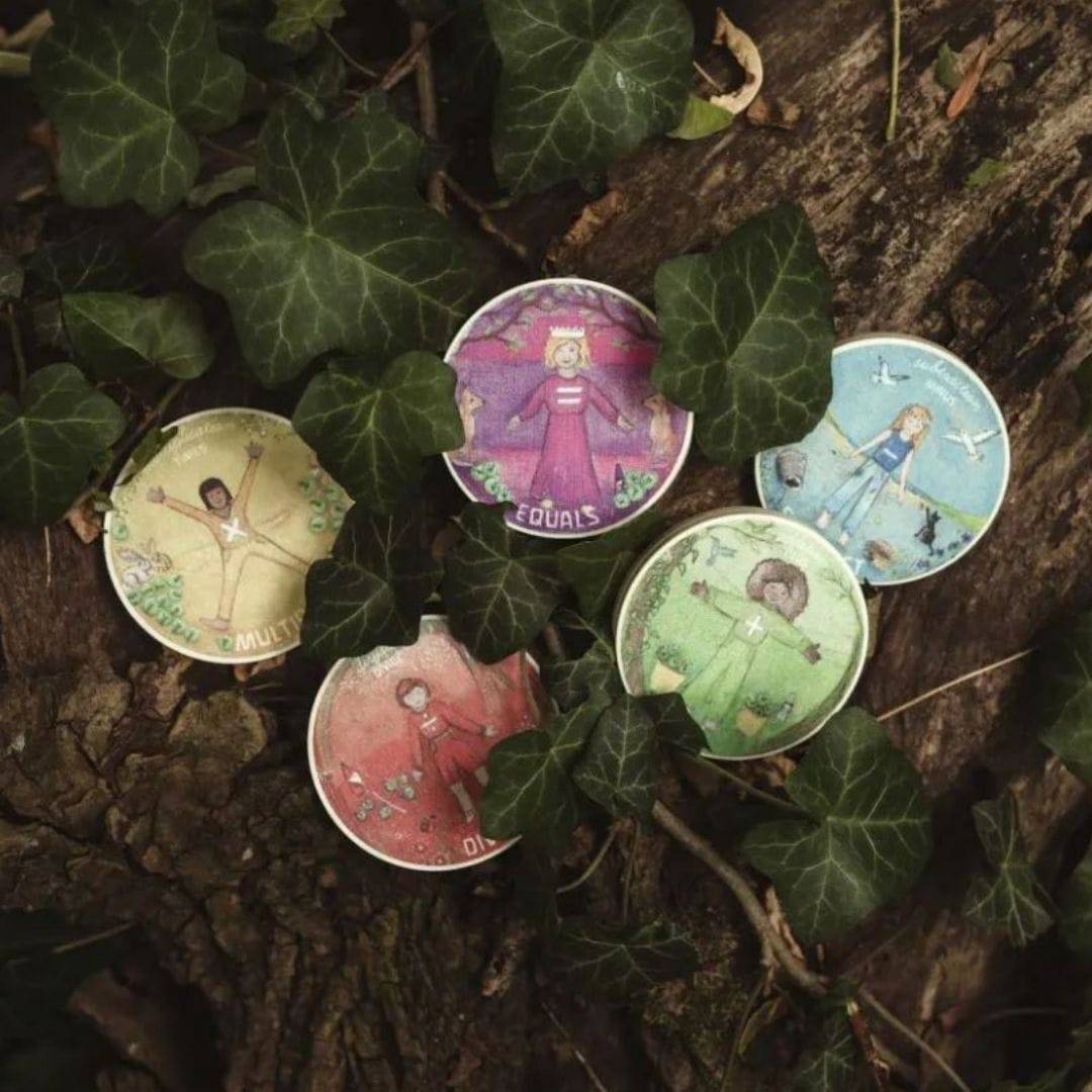 Children will delight in holding and visualizing the four math processes and equal function with these beautifully hand painted Waldorf Math Processes Wooden Coins from Wilded Family.